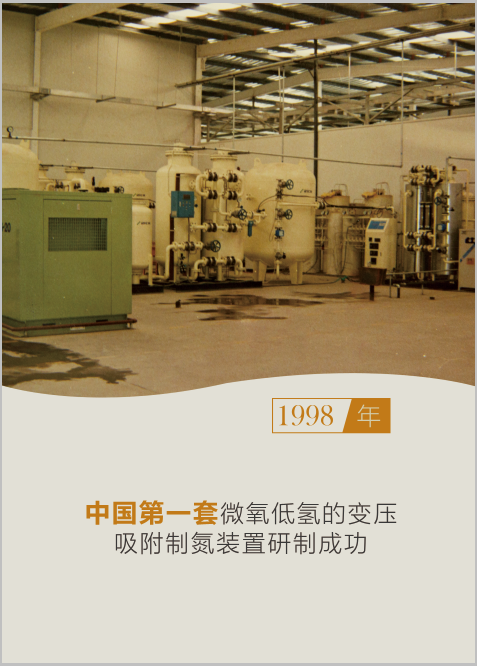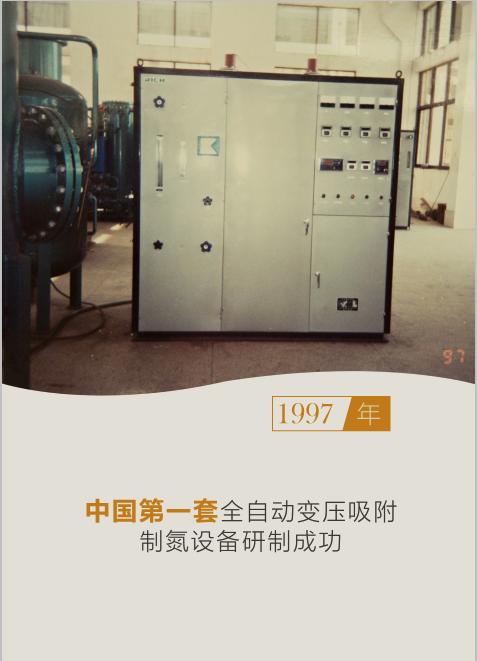 1997年,國(guó)內(nèi)首套全自動(dòng)變壓吸附制氮設(shè)備研制成功。