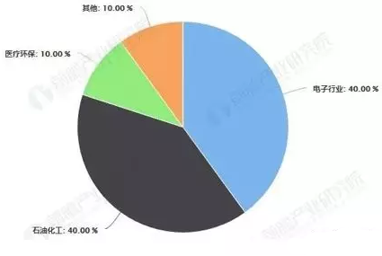 目前,在我國特種氣體年銷售額中,電子行業(yè)約占40%,石油化工約占40%;醫(yī)療環(huán)保約占10%,其它約占10%。