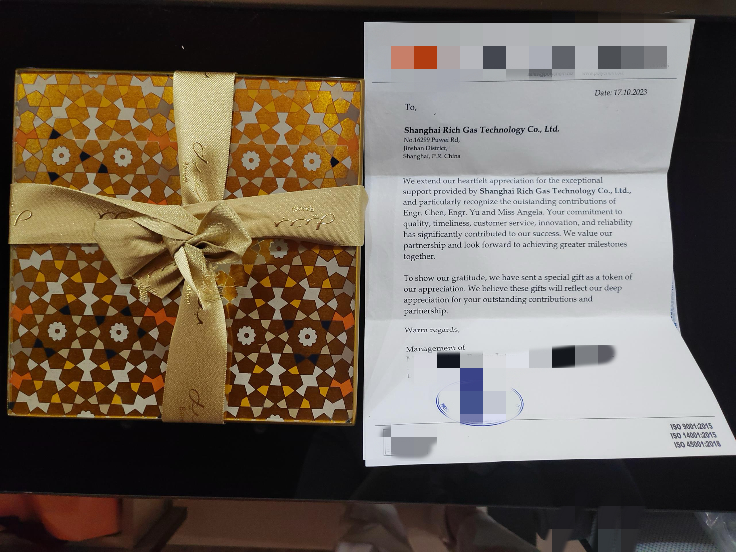 近日,瑞氣收到了來自迪拜客戶的感謝信,信中充滿了對瑞氣產(chǎn)品和服務(wù)的贊揚(yáng)。